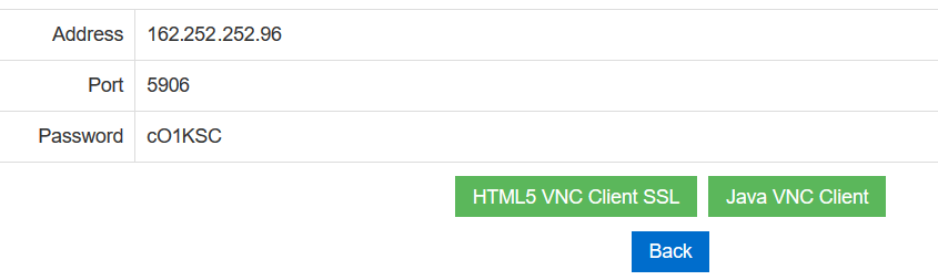 在下一页上,您将能够看到VNC地址,端口和密码: