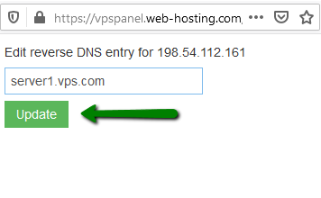 - 将会出现一个弹出窗口。输入您的VPS的主机名,然后单击更新: