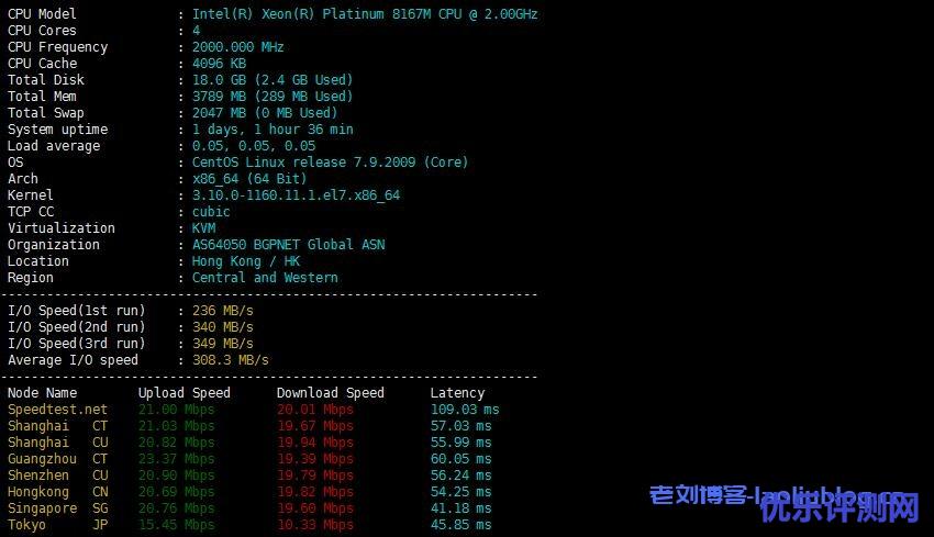 快云科技怎么样?快云科技是一家专门经营海内外节点的主机商,经营VPS和独立服务器,曾经老刘博客推荐过他们家的,用户反响都还不错。这里老刘博客主要测评下他们家的香港VPS,测试机配置是4核4G内存共享20M带宽,有需要香港VPS的朋友可以关注下。