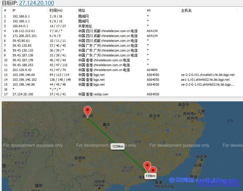 然后我们看看路由线路,先看看去程,如下所示: