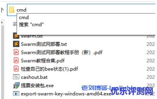 4、在bee.exe所在目录地址栏,输入cmd回车,打开命令行窗口
