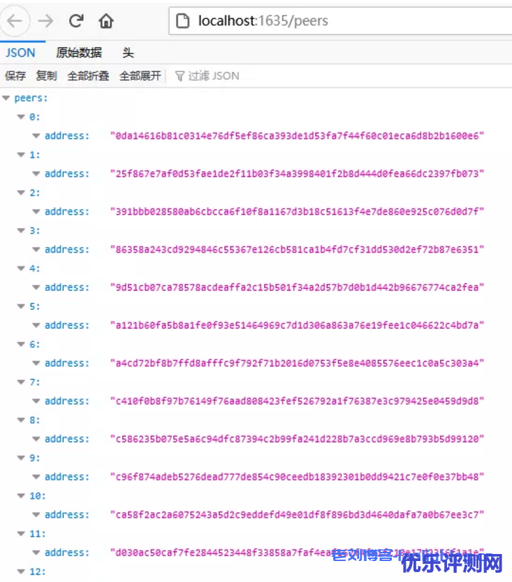 查看连接的节点数,输入:http://localhost:1635/peers,火狐浏览器显示结果比较直观。方便查看。
