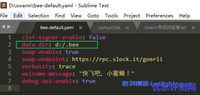3、用编辑器修改默认配置文件bee-default.yaml