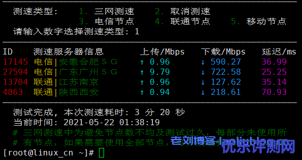 国内三网测速情况如下: