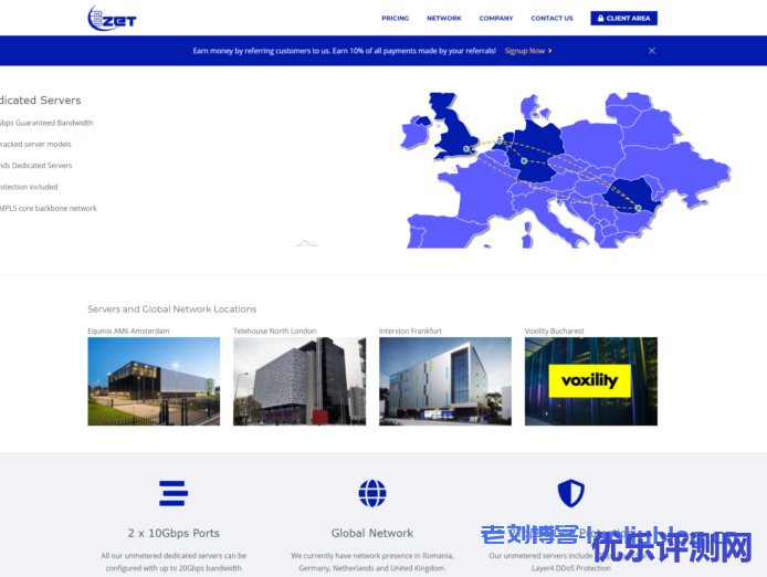 ZetServers怎么样?ZetServers成立于2010年,是国外主机商家,正规企业运营,VAT ID: RO42390138,拥有自己的AS号(AS25198),主要销售VPS和独立服务器,机房有荷兰和罗马尼亚,这两个地区的机器在内容管理方面都比较宽松,ZetServers商家提供10Gbps的带宽,并且不限制流量,免费提供高达2Tbps的DDOS防御,目前VPS只有罗马尼亚机房,价格适中,不过线路方面没有直连国内的。最低配置:€10/月/1核/1G内存/30G SSD/10Gbps端口/不限月流量。