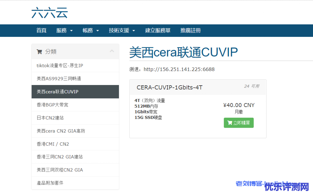 六六云666clouds美西cera联通CUVIP优惠套餐配置及价格: