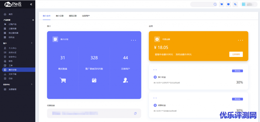 Pia云六月重新提高推广金额比例。将推广返利提高至30%,续费同样!
