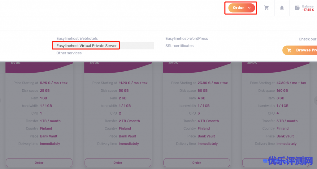 easylinehost芬兰VPS配置信息: