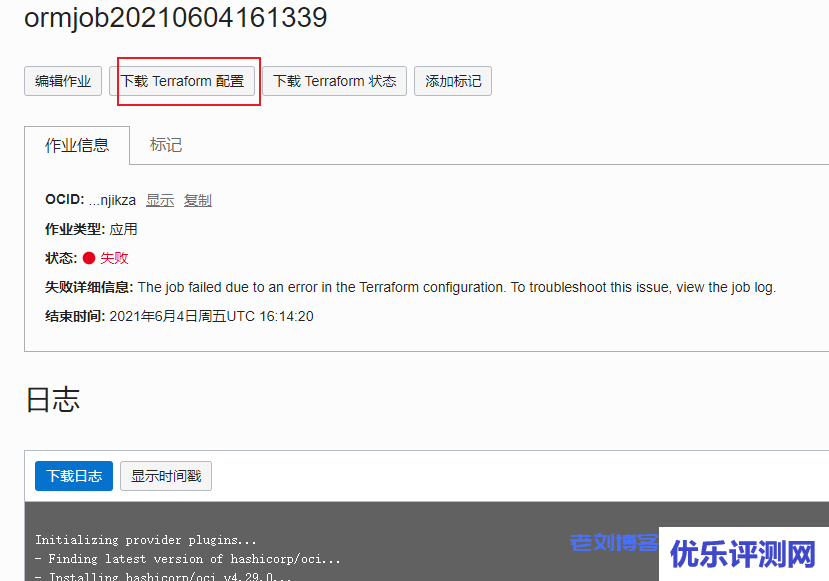 点击创建,默认会自动运行一次,我们点击下载 Terraform 配置,会得到一个压缩包,解压后,会有main.tf,用记事本打开,会有你需要的任何信息。当然这个文件也是我们前文需要初始化的东东,总而言之,这个文件就是这么来的。
