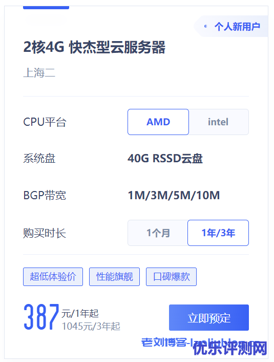 那么老刘博客为什么这么建议呢?真是针对真正想做好个人博客的网友,一台性能稳定的云服务器是一切的保证,利于SEO,建站的第一年,建议优选阿里云、腾讯云、华为云或者UCloud的云服务器,性能和服务有保证;其次我们建设博客大部分用户是针对国内用户的,虽然选择一台免备案的CN2香港机器也适用国内用户访问,但并不能进行备案,而且访问延时方面,即使是CN2 GIA线路也是比国内机房慢的,另外网站备案有利于SEO;建议选择北上广或中国东部地区的机房,因为中国人口大部分在东部,而且经济也发达些,你建站总是想图money的吧;最后说下配置2核4G内存3M带宽40G系统盘已经是蛮不错的云服务器配置了,再多就是浪费,成本也很高,如果低于这个配置,并发量大了可能招架不住,老刘博客认为这是最优配置了!当然这机器最少建议买1年,这主要是因为各商家续费比较贵的,其次,1年时间运营网站稳定后,影响网站SEO效果主要是域名了,随便找家差不多的便宜的IDC厂商的机器就行,不过配置不建议降配,至少同配置或进行升级。