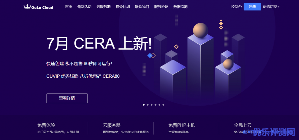 云服务器 全场8折 优惠码:CERA80适用于月付、季付、半年付