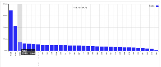 在ping.pe网站里,老刘博客测试了机器的丢包率情况,考虑到是国内大陆机器,研究海外丢包率没有什么意义,这里只截取了国内节点丢包率情况,出现丢包的节点,丢包率在3%以内,可以接受。