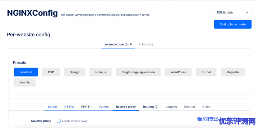 其实可以采用可视化的方式对 Nginx 进行配置,老刘博客在 GitHub 上发现了一款可以一键生成Nginx配置的神器,相当给力。