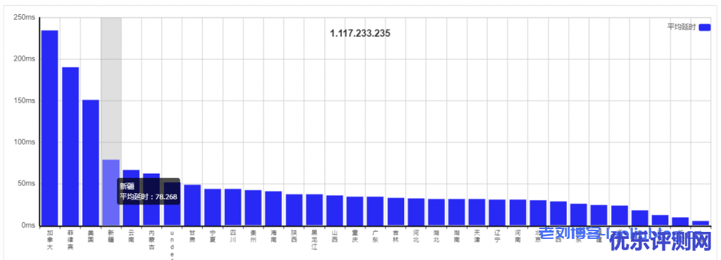 在17ce.com网站内,老刘博客测试了测试机器的三网ping性能,国内延时均在78ms以内,上海本地延时达到了个位数字,Ping结果与UCloud机器无差别。