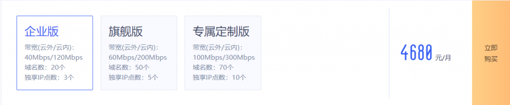 节点支持东京、首尔、洛杉矶、莫斯科、华盛顿、法兰克福、雅加达,产品版本有企业版、旗舰版和专属定制版。立即购买>> 优惠报价咨询
