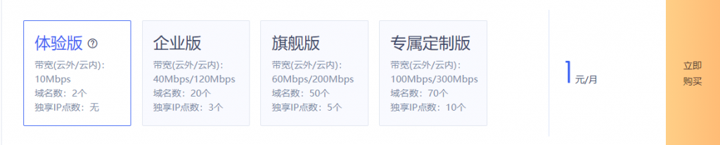 支持北京、上海和广州节点,4种产品版本,低至1元/月!立即购买>> 优惠报价咨询