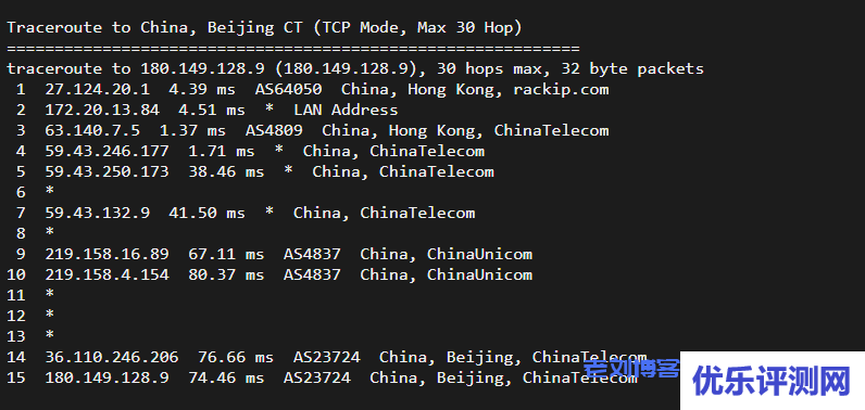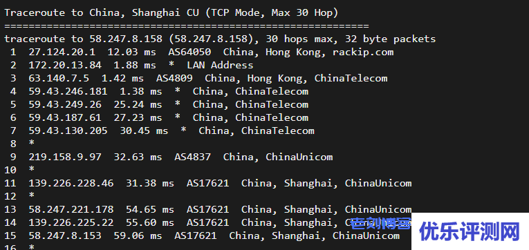 总结下快云科技云服务器测评结果:电信、联通、移动,这三网的回程是最关键的加速点,电信,联通都是走的CN2的渠道,移动走的NTT;电信去程走CN2,联通去程169,移动去程cmi。