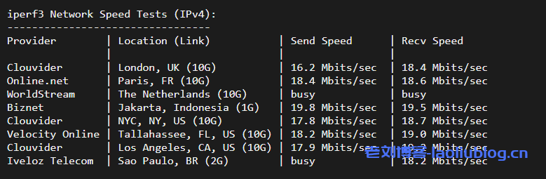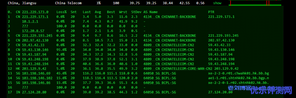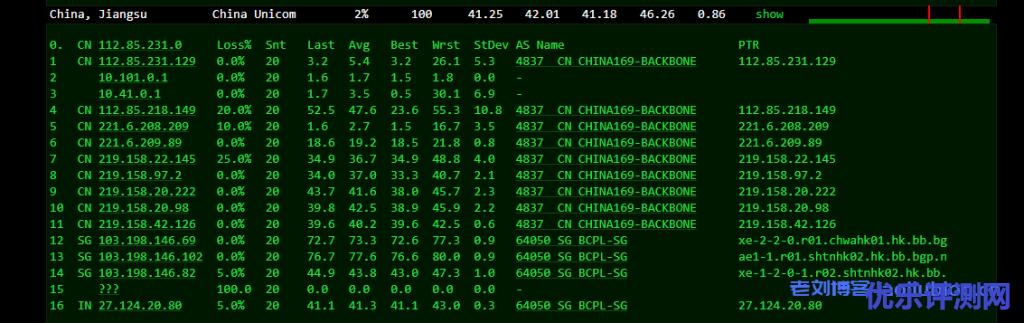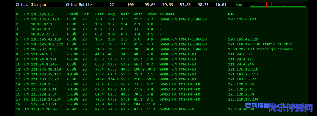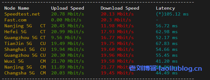服务器能跑到什么效果,在国内的不同节点测试的速度才是核心。这里用speedtest.net的国内节点来跑一下,我们发现上行下行基本对等