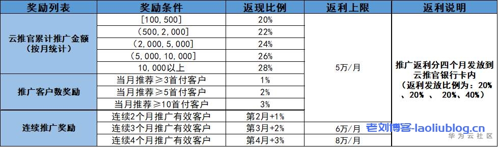 返利规则方便各家都相差不大,阿里云、腾讯云和华为云会根据活动和月份调整返利规则,一是适当的时候要主推某个活动,而是动态调整,不能让推荐者赚太多钱,UCloud的就相对傻瓜了,具体见下:
