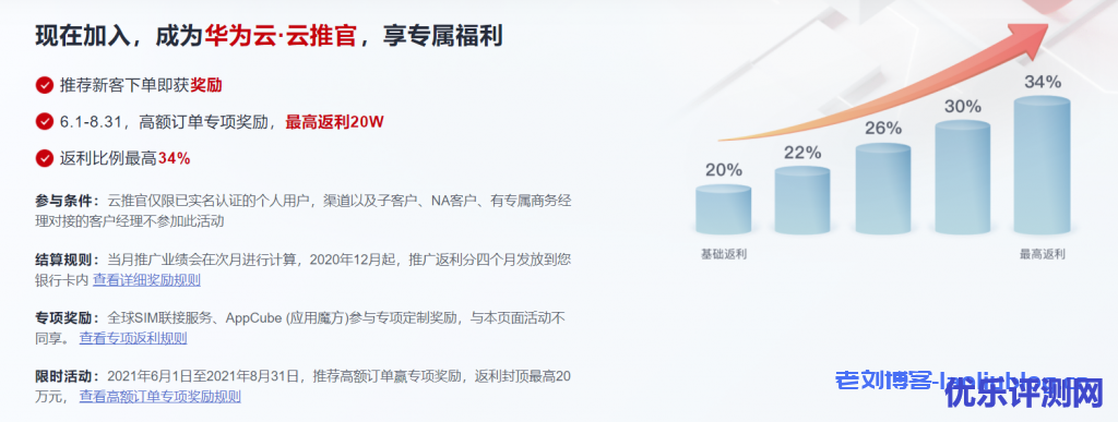 市场方面就不用多说了,阿里云的市场覆盖太广了,是个人都知道阿里云,其中90%应该都有阿里云账号,想赚阿里云新用户推荐返利的钱太难了!这里腾讯云、华为云和UCloud市场份额较少,就这点,老刘博客建议重心放在腾讯云、华为云和UCloud的云服务器推荐上。