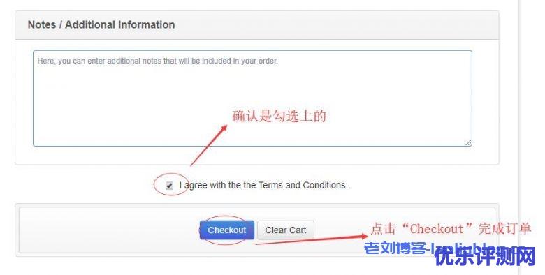 然后确认协议是勾选上的,最好点击“Checkout”完成订单,如下图所示: