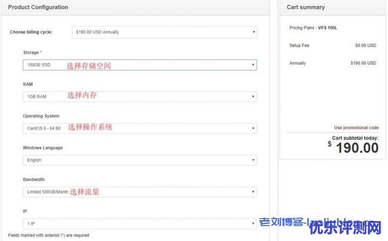 然后选择存储、内存、流量等配置,默认就是最低配置,如下图所示: