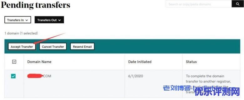 如果你想要加速域名迁移,可以返回到Godaddy,进入页面https://dcc.godaddy.com/transfers/out,勾选你正在迁出的域名(一般10-30分钟会显示),然后点击立即迁出,就会提示你:“Transfer Out Successful!Your request has been submitted. Changes may take 15 minutes to take effect.”大概15-120分钟以内,域名就迁移完毕!