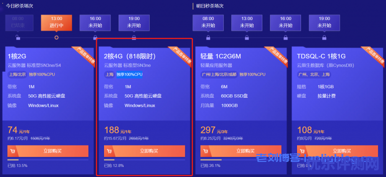 | 19点 | 2核 | 4G | 150G | 5M | 1个 | 国内 | 568元/1年 | 点击购买 |