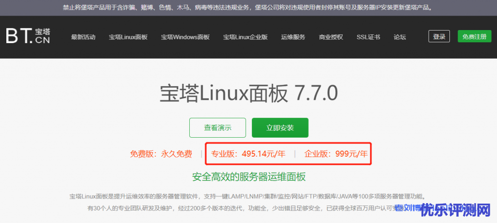 宝塔面板7.7.0开心版新版本下,如果你安装的是宝塔面板专业版,直接执行企业版脚本,还是专业版 (以前可以直接换脚本的 现在不行,已加了缓存)。正确操作:如果你是专业版 – 先执行bt命令16修复面板 – 登录到软件商店 – 更新软件列表(确认变成免费版了) – 执行企业版脚本 – 登录到软件商店 – 更新软件列表(已经变成企业版了),企业版变更专业版同理。