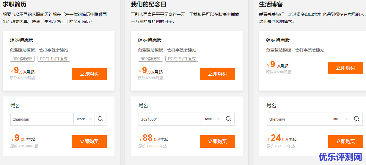 说明:模版建站特惠版9.90/首月起。模版建站基础版500.00/年起,模板建站会员电商轻营销998.00/年起,设计师定制建站4980.00/年起(买1年送6个月)。