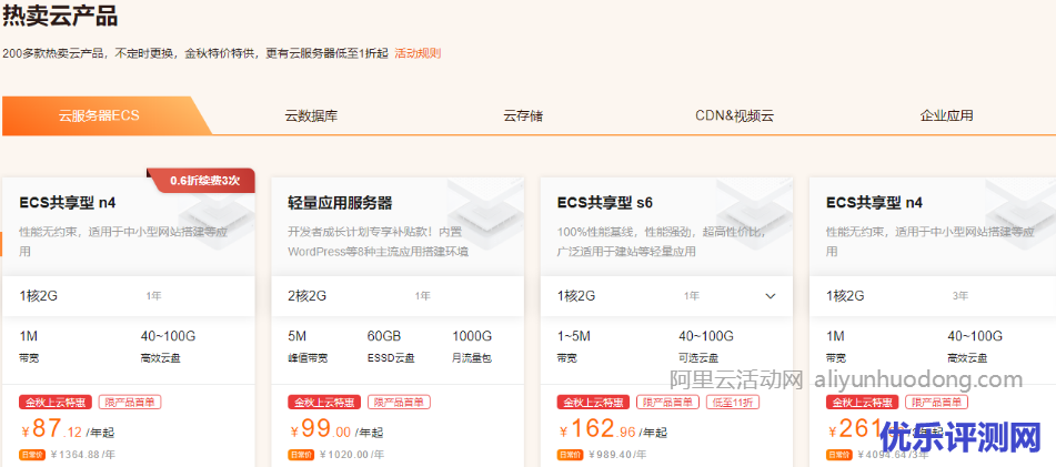 汇聚阿里云爆款云产品,云服务器1核2G低至 87.12元/年