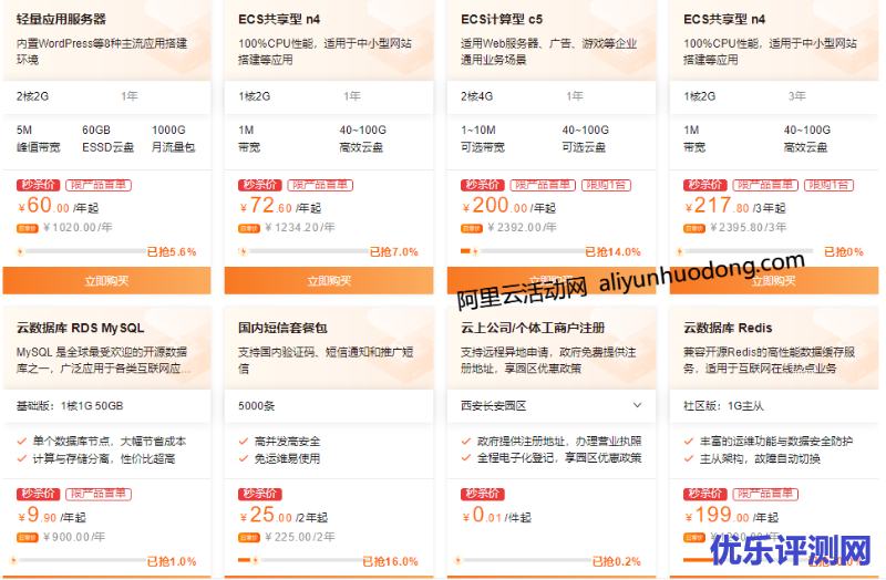 内置WordPress等8种主流应用搭建环境,2核2G,5M峰值带宽,60GB ESSD云盘,1000G 月流量包,¥60/1年起 ;