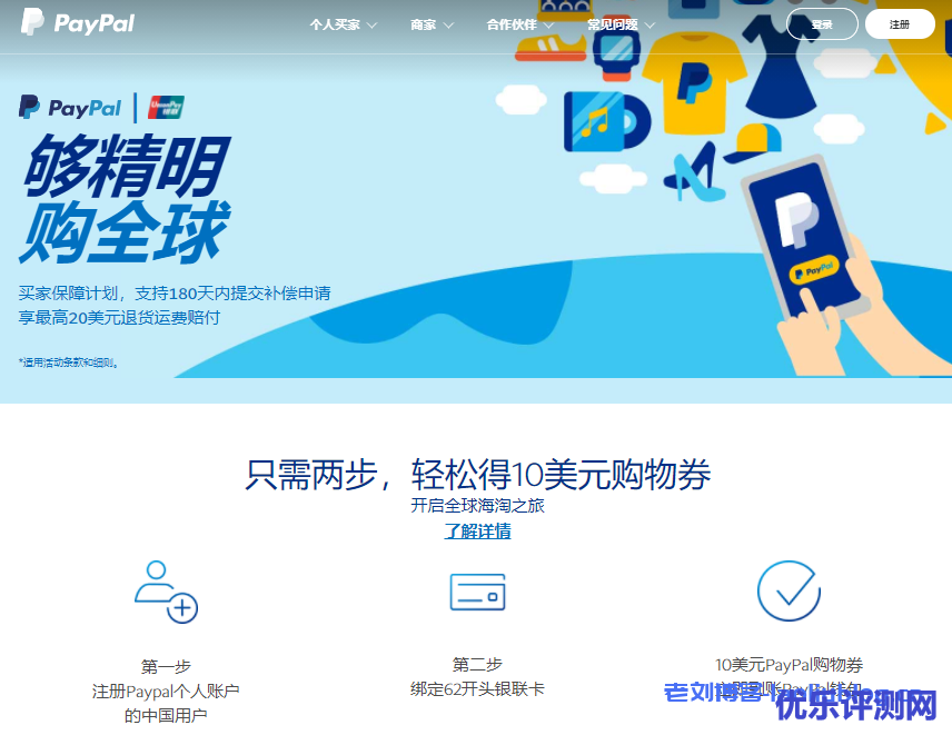 paypal搞了一个新用户注册有礼活动,在活动期间新注册的用户只要绑定62开头银联卡,成功绑卡后即可在其PayPal钱包中获得一张价值 10 美金的 PayPal 美元购物券。注意,适用的交易币种仅限美元,单笔交易满10.01美元即可使用。