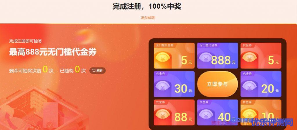 1、在注册账号之后,很多新手用户不知道,阿里云对新注册用户有一个注册有礼活动,在活动内可以免费抽取阿里云无门槛代金券,最高可抽取888元面额的无门槛代金券。活动地址:阿里云注册有礼