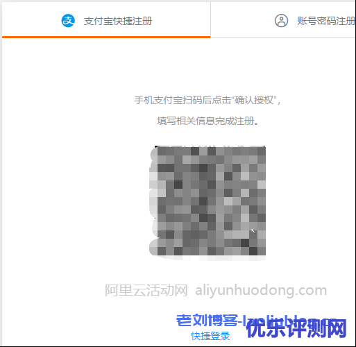 购买阿里云服务器之前要先注册阿里云账号,然后做实名认证,才能购买阿里云服务器或其他云产品,如果需要快速注册并实名认证的话,可以用支付宝账号扫码注册和登录,方便快捷。