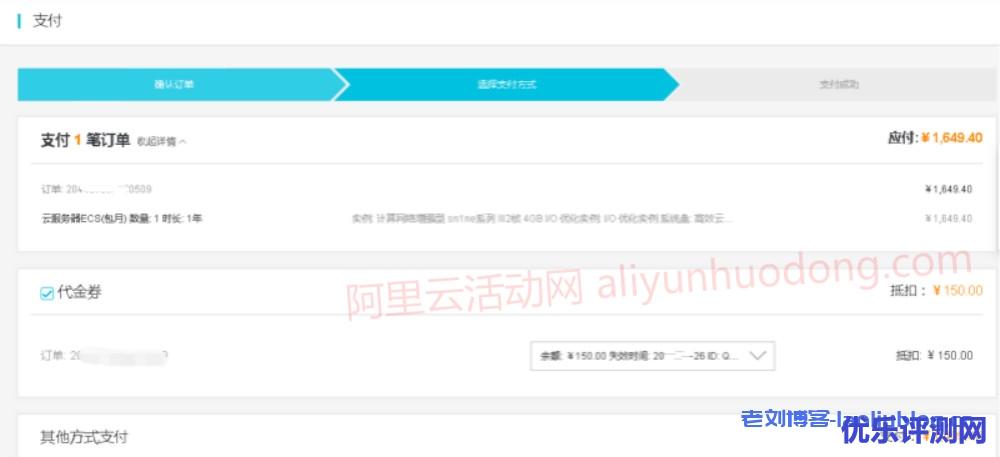 以上代金券领取之后,在购买阿里云服务器时可使用代金券抵扣现金使用,下面内容会教大家如何使用代金券。