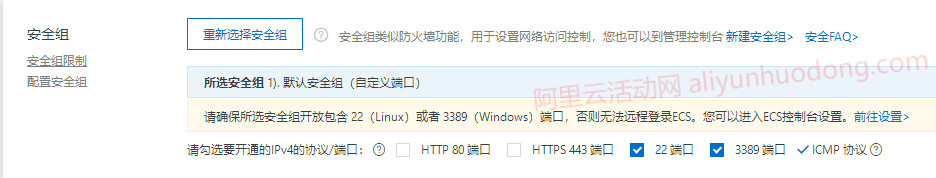 安全组是我们保护云服务器安全的重要措施,阿里云服务器的安全组默认会打开80/443/21/22/3389等几个常用端口,80和443是用来访问网站的,21/22是ftp默认端口,最好修改一下,3389是windows远程桌面登陆用的。