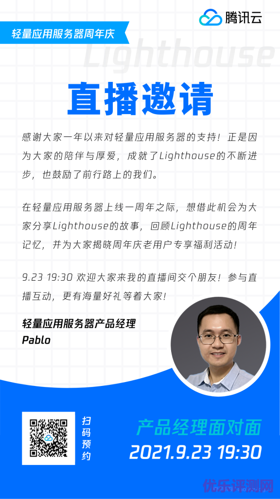 腾讯云轻量应用服务器周年庆,直播邀请: