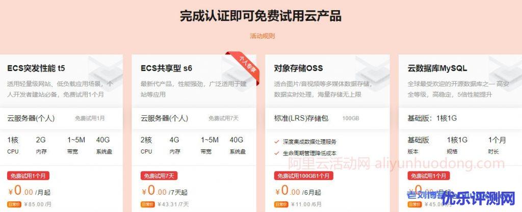 - 对象存储OSS:1TB,免费试用1个月;