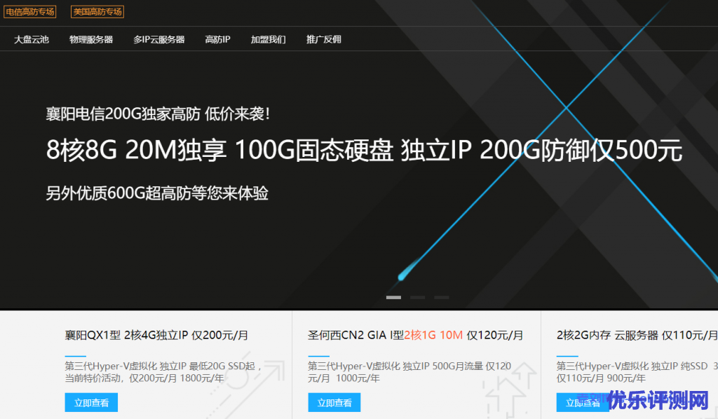 标准互联商家最近为了庆祝自主研发的公有云系统(HIPYUN)成功上线,特推出襄阳电信高防云服务器5折促销活动,机器基于第三代Hyper-V,100Gbps防御能力,独立带宽不限流量,最低配8核8G套餐450元/月。