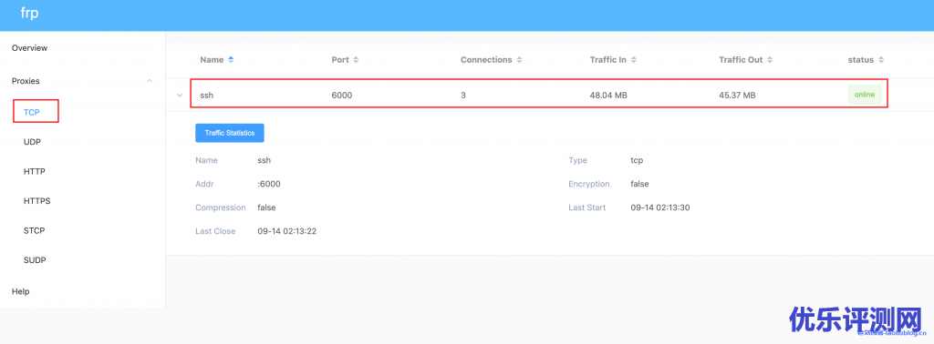 管理界面实时查看 Frp 的运行状态及代理统计信息展示