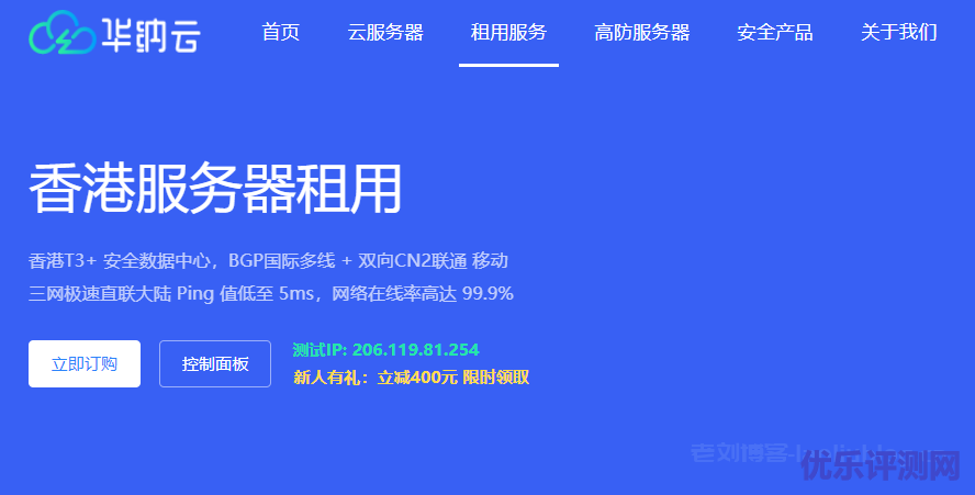 华纳云香港服务器租用服务,机房在香港T3+安全数据中心,BGP国际多线 + 双向CN2联通 移动,三网极速直联大陆 Ping 值低至 5ms,网络在线率高达 99.9%,首月900元起,试IP: 206.119.81.254。新人有礼:立减400元 限时领取
