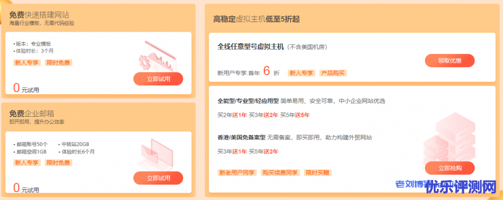 (1)网站建设试用:试用产品为专业版模板网站建设(不含设计师搭建服务),每位新会员可试用1次,试用时间为3个月;