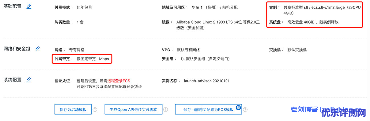 购买阿里云服务器有两个入口,一种是在阿里云服务器ECS页面自定义购买,选择ECS实例规格、CPU、内存、磁盘、带宽,小编以阿里云ECS共享型S6实例2核4G1M带宽云服务器为例,如下图: