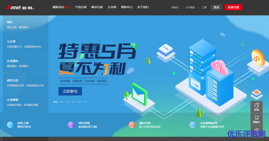新网云虚拟主机怎么样?新网始于1993年,专注于互联网基础应用服务,为用户提供域名、网站建设、企业邮箱、虚拟主机、云服务器、ssl证书、商标注册等多种服务,高端品质售后无忧!