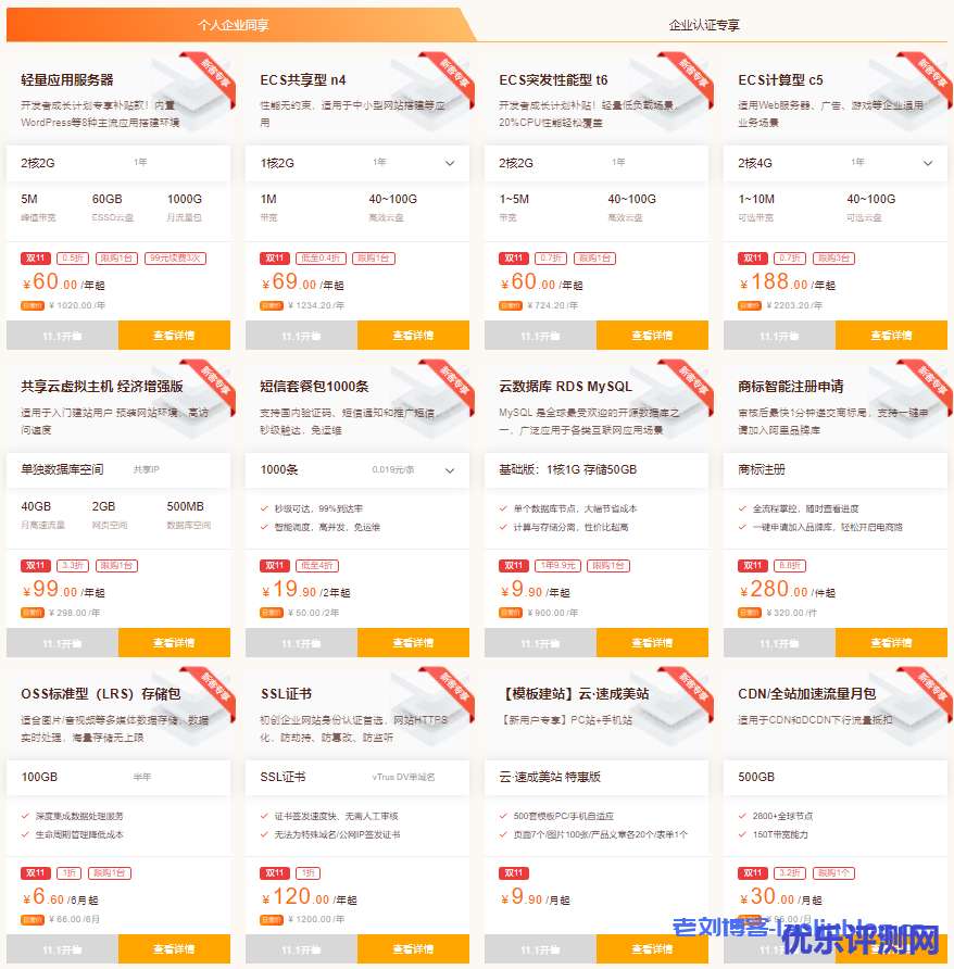 前文在文章《阿里云双11上云加油包:亿元上云加油包来袭,个人最高立减300元,企业最高立减1111元!》和《阿里云11.11上云狂欢节2021云小宝A计划,完成任务可得限量3000个手办+5000元大礼包》,老刘博客介绍了今年阿里云双11上云狂欢节活动上云加油包和云小宝A计划内容,本篇文章继续介绍阿里云双11上云狂欢节新人特卖专区内容:爆款云产品,新客特惠全年最低价,2核4G5M轻量应用服务器首年60元续费90元(以此价格可续费3次),11.1开售!
