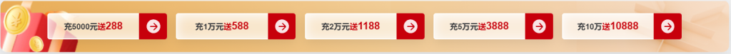 限10月25日-11月7日期间充值享返券权益!充5000元送288,充1万元送588,充2万元送1188,充5万元送3888