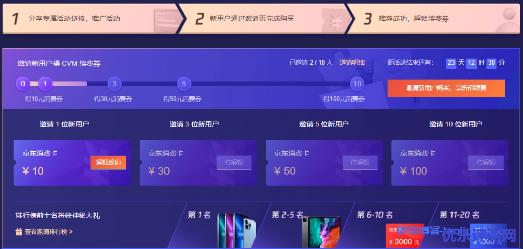 累计邀请3名新用户,最高获得10元+30元京东卡;