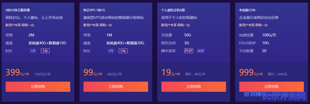 不知道大家是不是也和老刘博客一样很久没有看到或听到景安网络的消息了,知道最近有网友在知乎回复问老刘博客景安云怎么样,我这才关注到这个商家景安快云最近推出了双11上云优选特惠活动,云服务器低至年99元,虚拟主机年19元,全场低至五折。