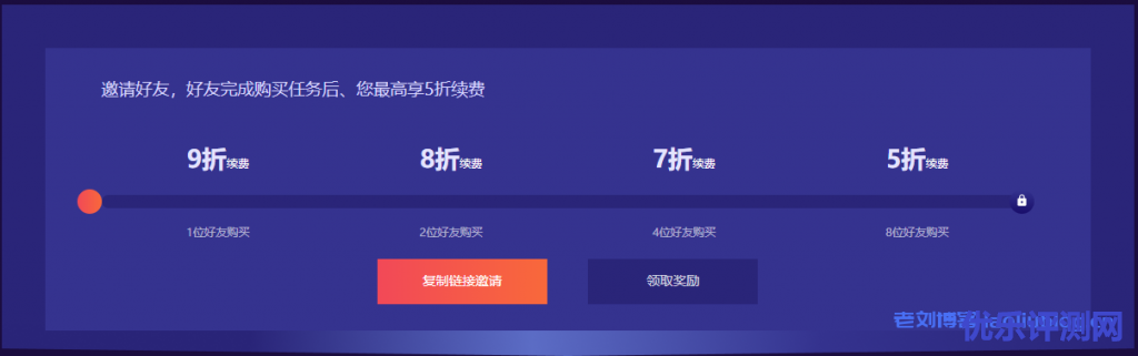 邀请新用户完成购买任务,最高可领取5折续费折扣